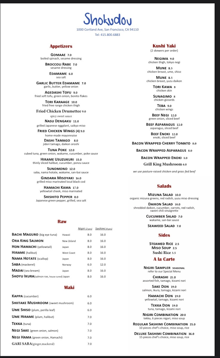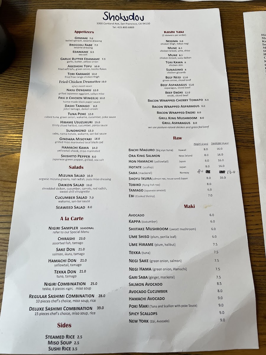 Shokudou Menu